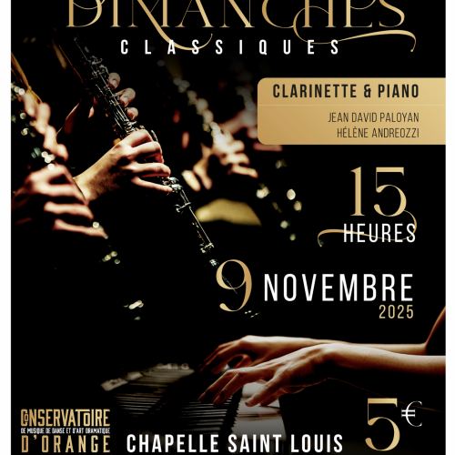 Rendez-vous pour un dimanche musical à l’occasion des 𝗗𝗶𝗺𝗮𝗻𝗰𝗵𝗲𝘀 𝗖𝗹𝗮𝘀𝘀𝗶𝗾𝘂𝗲𝘀. Venez apprécier un duo 𝗰𝗹𝗮𝗿𝗶𝗻𝗲𝘁𝘁𝗲-𝗽𝗶𝗮𝗻𝗼 (...)