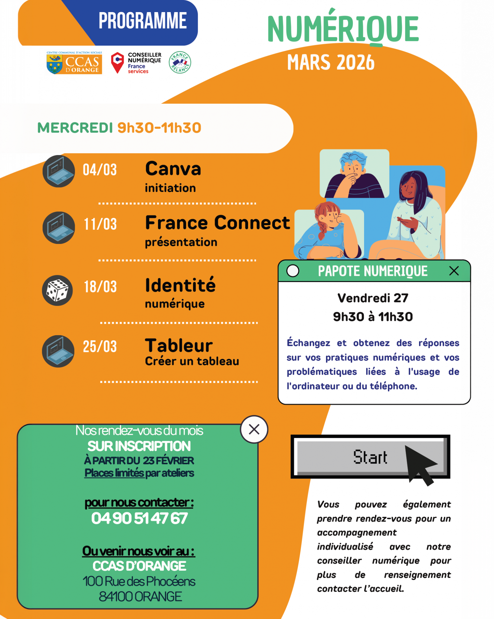 Rendez-vous au CCAS pour développer vos compétences : 𝗖𝗮𝗻𝘃𝗮, 𝗙𝗿𝗮𝗻𝗰𝗲𝗖𝗼𝗻𝗻𝗲𝗰𝘁, 𝗶𝗱𝗲𝗻𝘁𝗶𝘁𝗲́ 𝗻𝘂𝗺𝗲́𝗿𝗶𝗾𝘂𝗲… Vous apprendrez à utiliser les outils essentiels du quotidien, sur ordinateur comme sur téléphone, afin de faciliter toutes vos démarches. 📱𝗡’𝗮𝘁𝘁𝗲𝗻𝗱𝗲𝘇 𝗽𝗹𝘂𝘀, 𝗽𝗲𝗻𝘀𝗲𝘇 𝗮̀ 𝘃𝗼𝘂𝘀 𝗶𝗻𝘀𝗰𝗿𝗶𝗿𝗲 ! ✍️