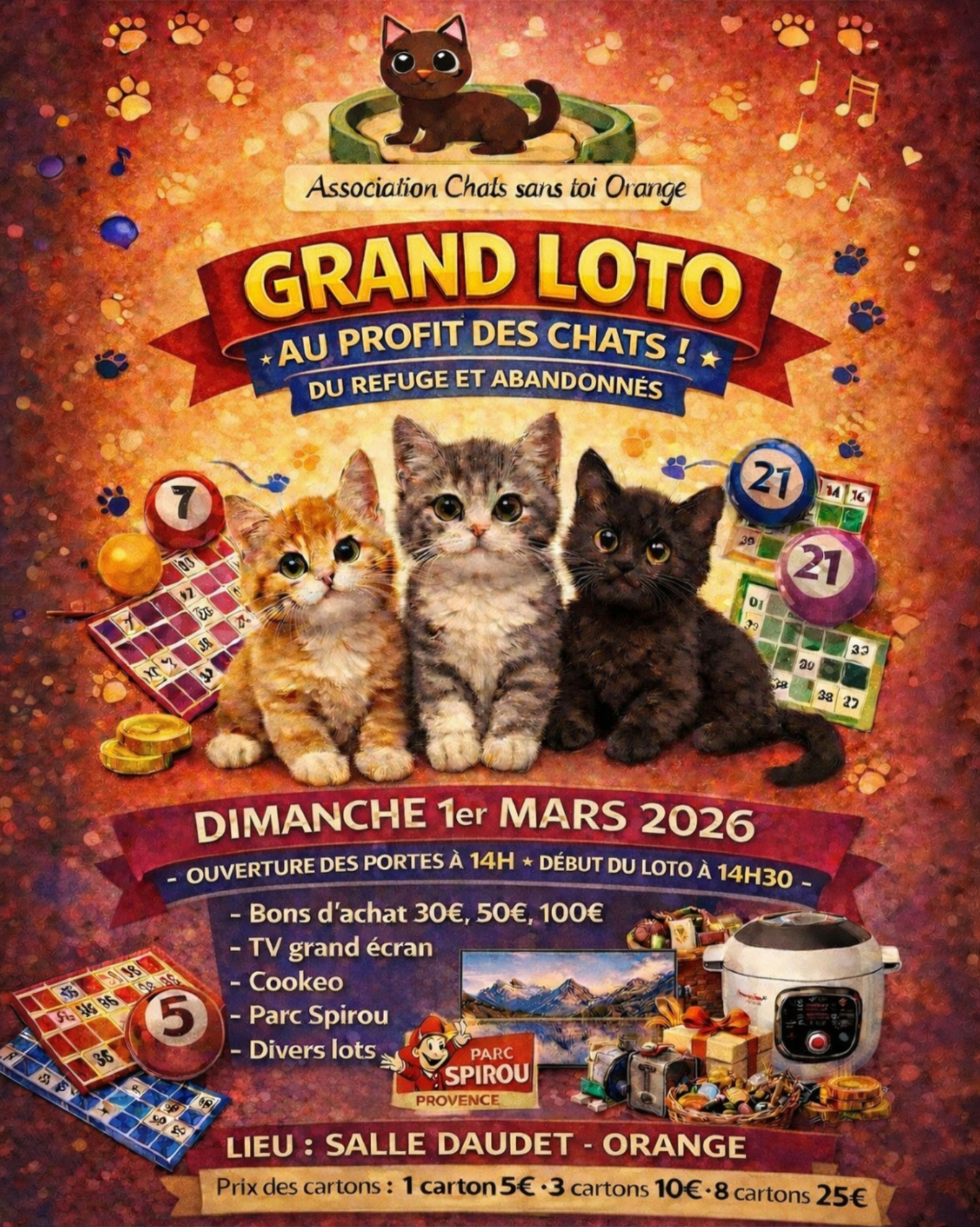 📍 Espace A.DaudetVenez participer au grand loto de l’association 𝗖𝗵𝗮𝘁𝘀 𝘀𝗮𝗻𝘀 𝘁𝗼𝗶 ! Tentez de gagner des bons d’achat, une télévision grand écran, un Cookeo et bien d’autres surprises encore. 🍀