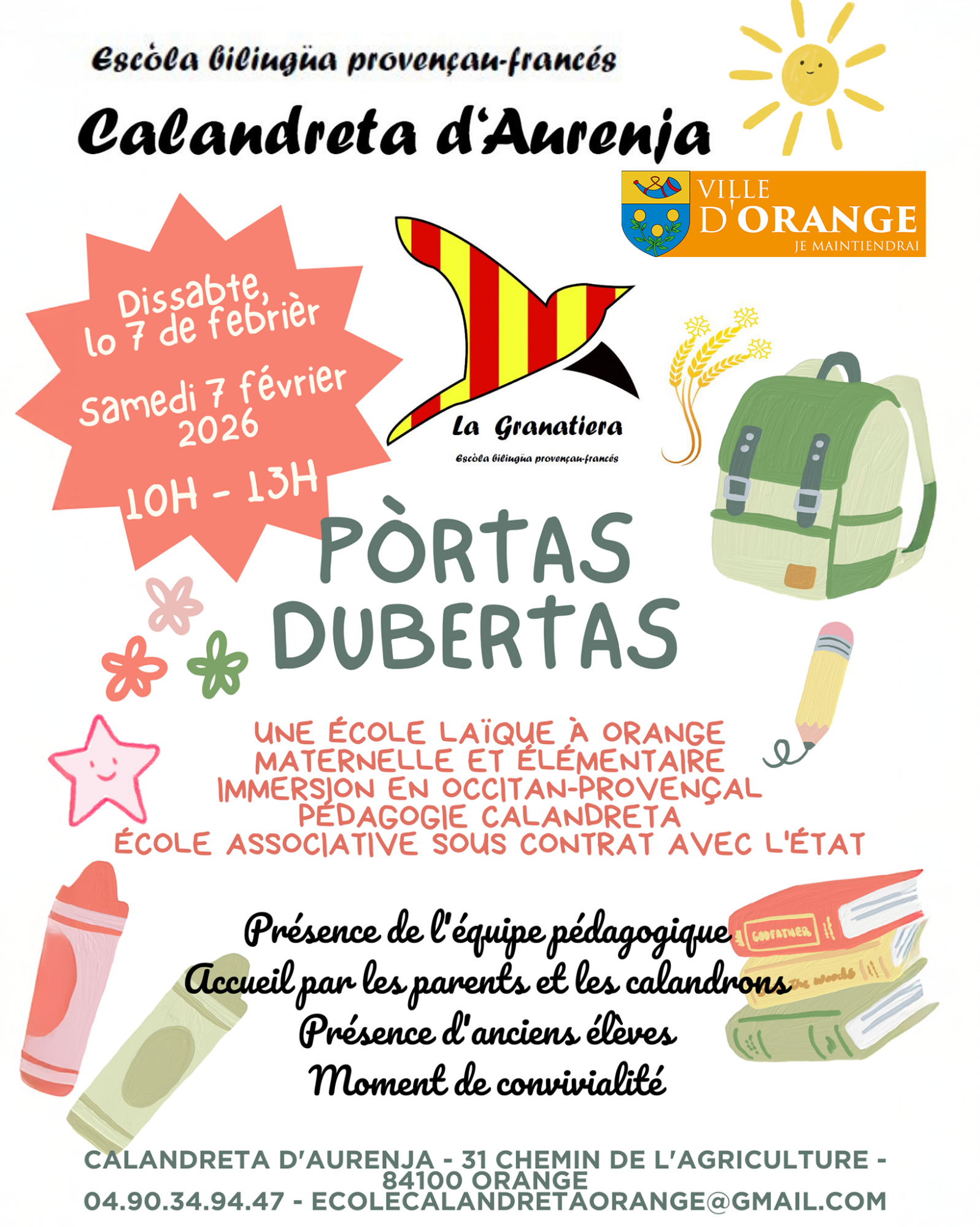 Venez découvrir les couloirs de cette 𝗲́𝗰𝗼𝗹𝗲 𝗺𝗮𝘁𝗲𝗿𝗻𝗲𝗹𝗹𝗲 𝗲𝘁 𝗲́𝗹𝗲́𝗺𝗲𝗻𝘁𝗮𝗶𝗿𝗲 en immersion en 𝗼𝗰𝗰𝗶𝘁𝗮𝗻-𝗽𝗿𝗼𝘃𝗲𝗻𝗰̧𝗮𝗹. Vous y rencontrerez l’𝗲́𝗾𝘂𝗶𝗽𝗲 𝗽𝗲́𝗱𝗮𝗴𝗼𝗴𝗶𝗾𝘂𝗲 et aurez également l’occasion d’𝗲́𝗰𝗵𝗮𝗻𝗴𝗲𝗿 𝗮𝘃𝗲𝗰 𝗱’𝗮𝗻𝗰𝗶𝗲𝗻𝘀 𝗲́𝗹𝗲̀𝘃𝗲𝘀. 🗣️𝑈𝑛 𝑚𝑜𝑚𝑒𝑛𝑡 𝑑’𝑒́𝑐ℎ𝑎𝑛𝑔𝑒𝑠 𝑒𝑡 𝑑𝑒 𝑑𝑒́𝑐𝑜𝑢𝑣𝑒𝑟𝑡𝑒 𝑔𝑎𝑟𝑎𝑛𝑡𝑖. ✨